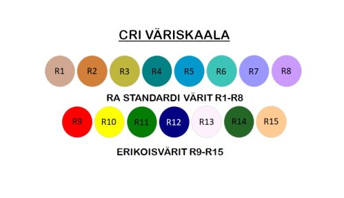 CRI -arvo mittaa valaisimen värientoisto-ominaisuutta, eli värikylläisyyttä, joka mitataan koko värintoistoskaalan R1-R15 keskiarvosta. Valaisimen teknisten ominaisuuksien kannalta punaisen värin värintoisto-ominaisuus on erittäin vaativa ja kertoo paljon valaisimen laadusta. Siksi mm. eri valaismien CRI-eli värikylläisyys vertailut on hyvä tehdä aina punaisiin tuotteisiin kuten omenoihin tai mansikoihin. Eron valaisimien värikylläisyyden laadussa näkee punaisen värin kirkkaudessa, eli punainen tomaatti on joko kauniin punainen tai se jää hailakaksi, riippuen valaisimen laadusta. Mitä korkeampi CRI -arvo sitä parempi on valaisimen värintoisto.